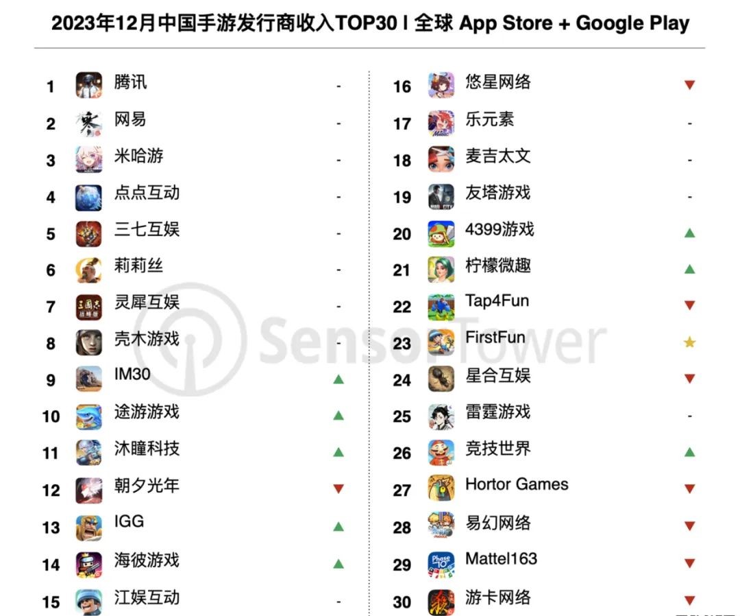 据SensorTower发布的2023年12月中国手游发行商全球收入排行榜,4399凭借《菇勇者传说》的优异表现,在全球应用市场的收入提升近50%,重回榜单第20名。其中,《菇勇者传说》在海外市场获得超过90%的正面评价(5星及4星),成为当月4399旗下收入最高的手游产品。