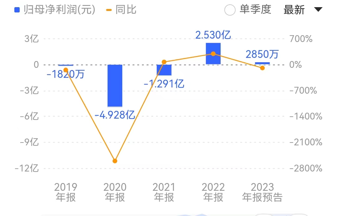 预计2023年净利润为2300万元-3400万元,较上年同期下降86.56%-90.91%。来源:同花顺