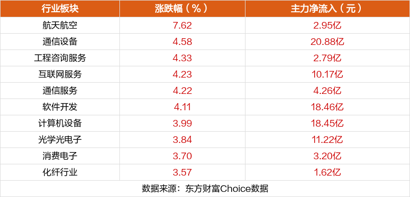 板块方面,航天航空、通信设备、工程咨询服务等板块涨幅居前,银行等板块跌幅居前。